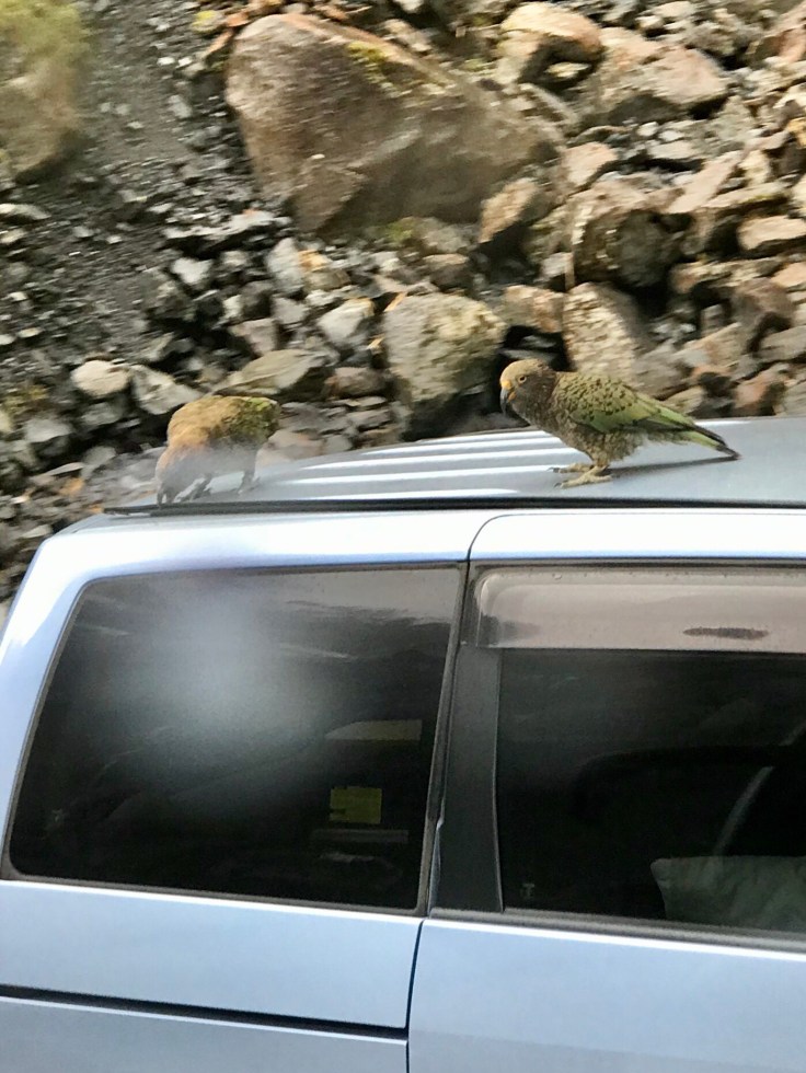 These crazy mountain parrots, called keas, have a thing for weatherstripping on cars… so they sit outside the entrance to a tunnel where cars sit and prey on people.