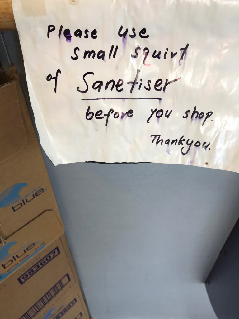 In the meantime, our local shop is offering “sanetiser” which maybe Trump could rub on, or inject, to become more, y’know, sane.