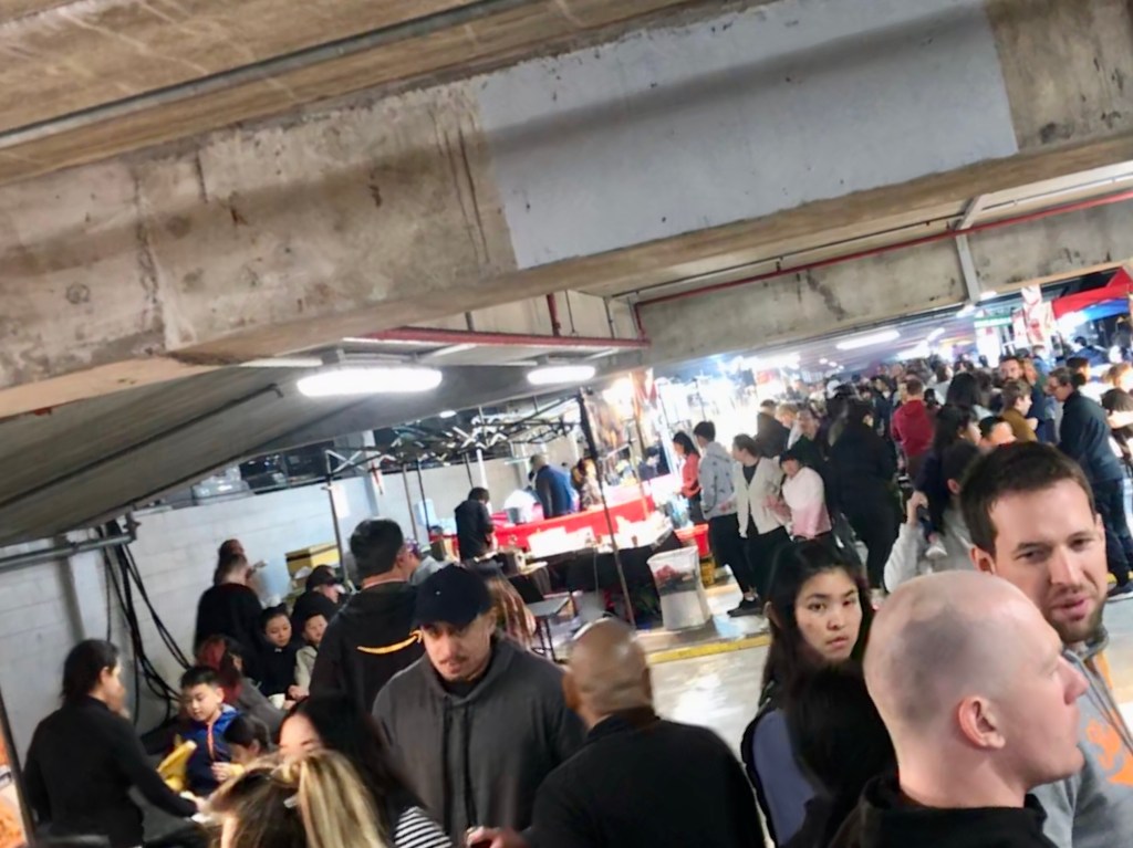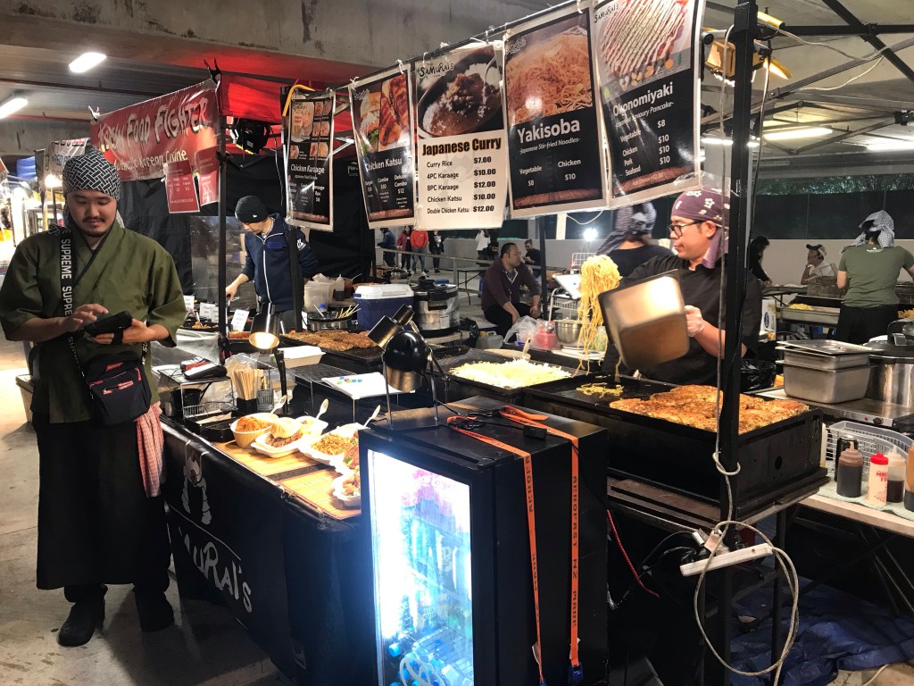 Our new neighborhood boasts the North Shore instance of Auckland’s traveling night market. Each Sunday evening part of the shopping center parking lot is crammed up with food and trinket vendors, and people like us wander around and buy stuff. People like teenagers wander around and try to get noticed by other teenagers. There was a pretty good guitarist, face painting, etc.