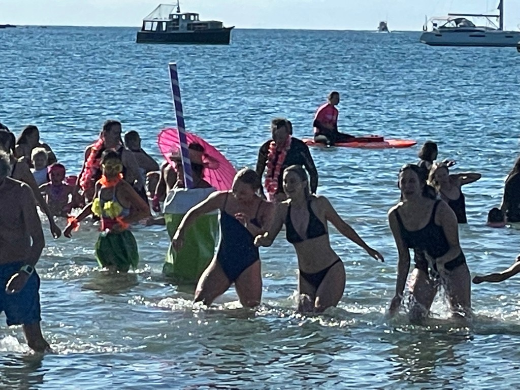But we had a fun weekend anyway. On Saturday I swam in the midwinter Iceberg Swim off Waiheke Island. The people above were doing the “Ice Splash” event, but they were way more photogenic than the people like me who did the 2km Iceberg swim. The water this time of year is about 55F, which is plenty chilly. Especially for those brave souls who swam it sans wetsuit! It was impressive to see over 1,000 registrants to the inaugural edition of this event… although it made for long ferry lines on the way home.