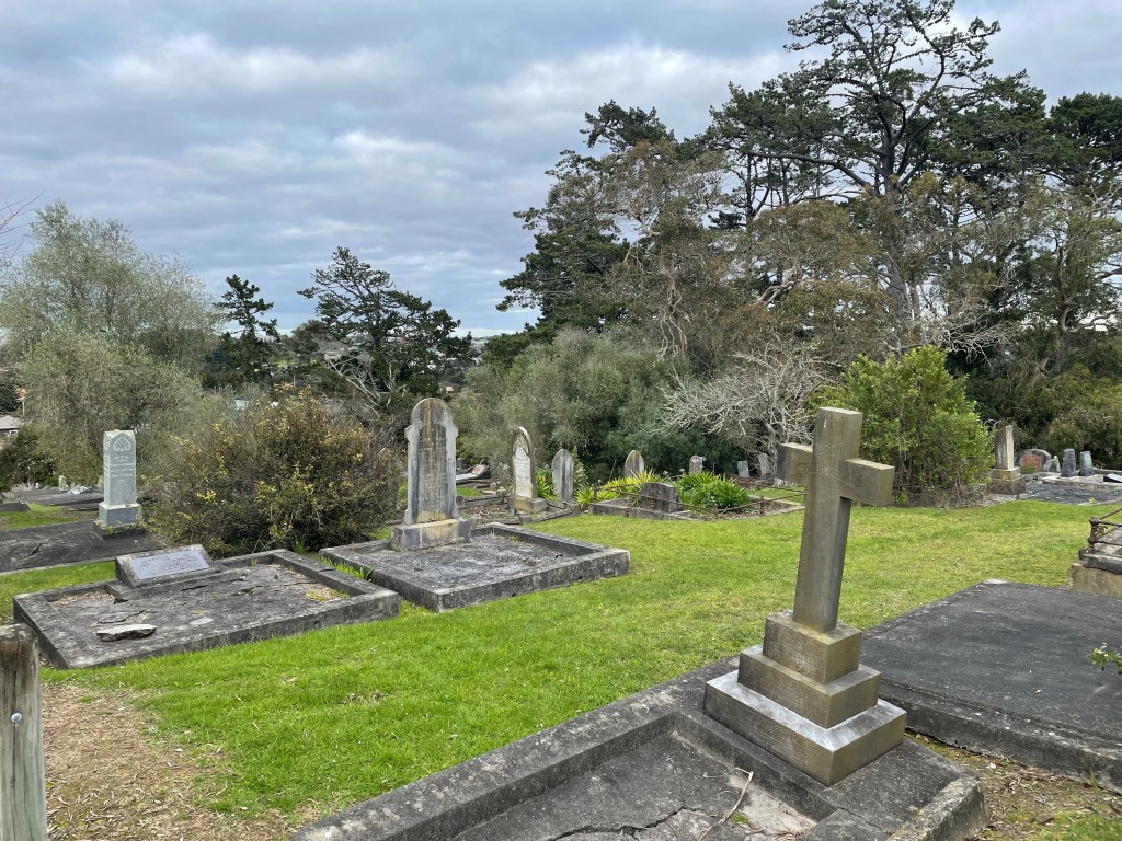 We see the Pompallier Cemetery when we drive north for weekend shopping trips. It looks pretty dramatic from the road, old gravesites on a hill. But on foot it was not quite so old, the monuments not so ornate.