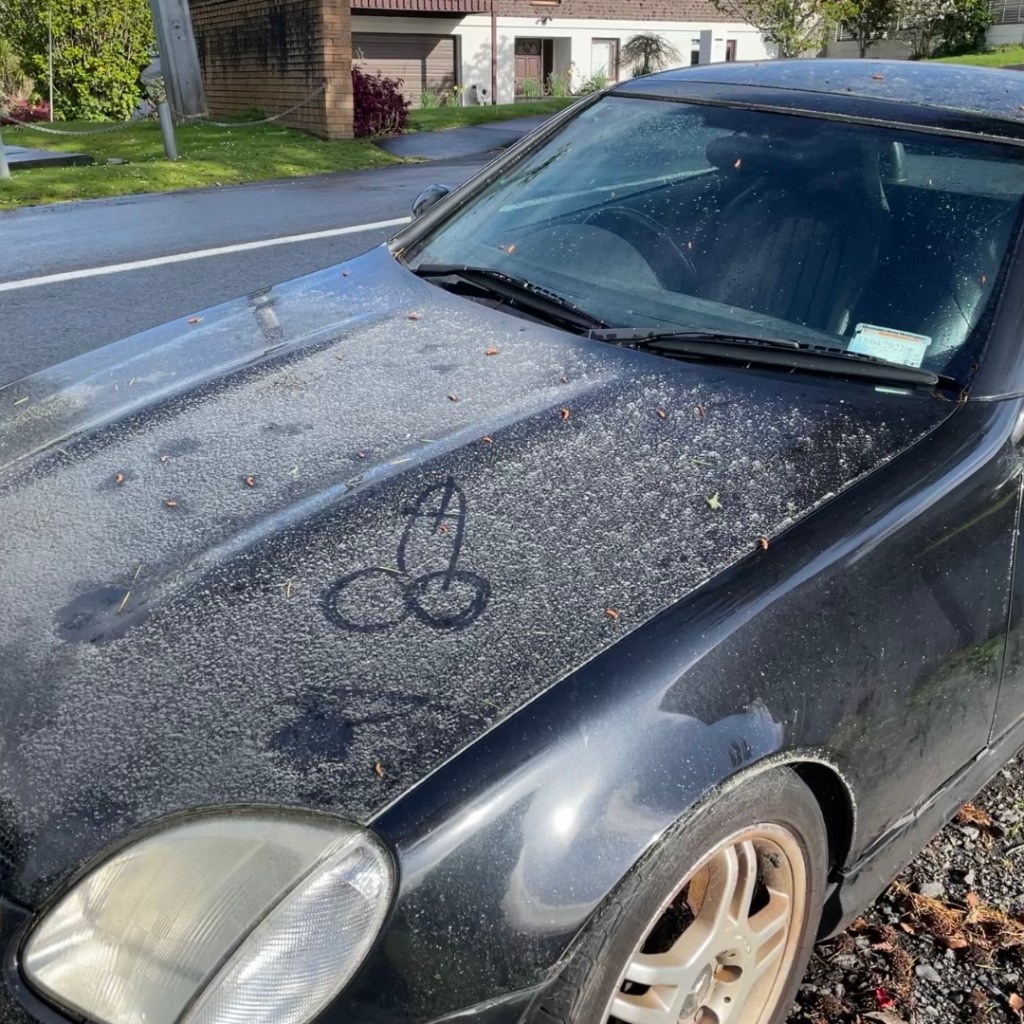 You don’t need to drive much in Level 4 lockdown. This car has been sitting under a tree so long that some local rapscallions drew a rocket ship in the pollen!