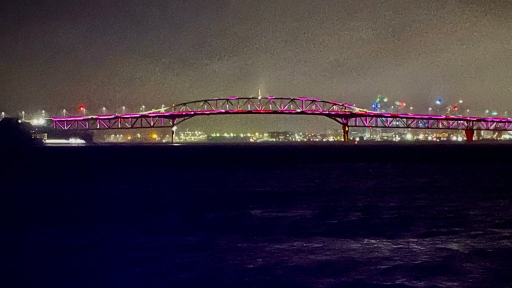 Later on, we hopped in the car and drove down to the ferry terminal to watch the Lunar New Year light show on the Harbour Bridge. They promised us a show that repeated every half hour, but it wasn’t until we saw it that we understood it was a 2-minute show rather than , say, a 25-minute show. Still it was cool… there was a webcast of Chinese sounding music and they managed to make a pretty effective tiger out of lights.