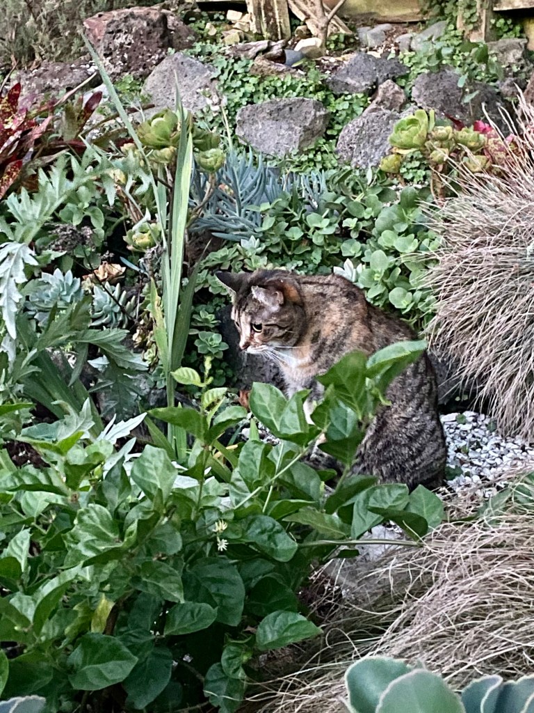 Misty keeping the back garden safe from cicadas, skinks, baby birds, and interloping cats.