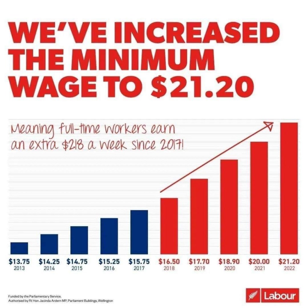 This image was posted by my local MP. He’s crowing about how his Labour Party has moved the NZ minimum wage up faster than the National Party… showing off how the Red bars grow faster than the Blue ones.