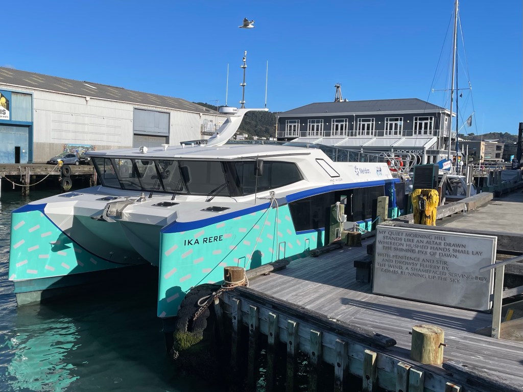 But will the Eileen Duggan poem on the plaque — or at least the sentiments that led to its emplaquification — have a longer-lasting impact on the city than this fancy new catamaran? Is windy Welly a city of writers / readers or a city of fancy green tech? Or maybe a more important question is: can you make the improbably difficult and expensive decision to adopt green tech if you’re NOT a city of writers and readers?