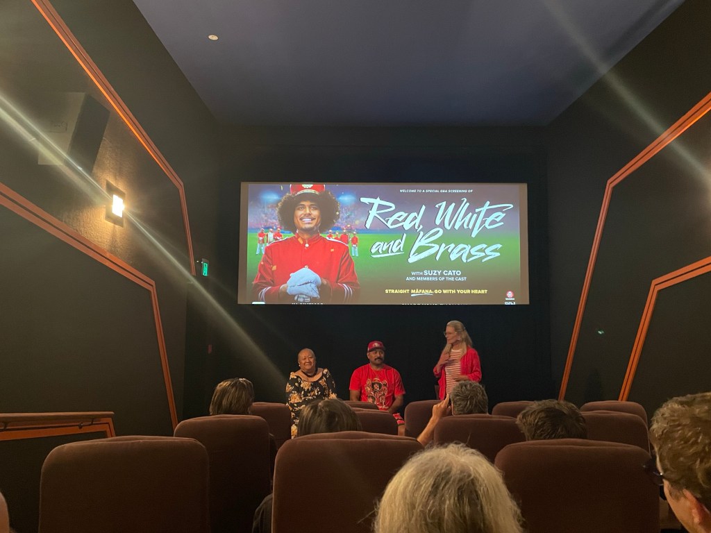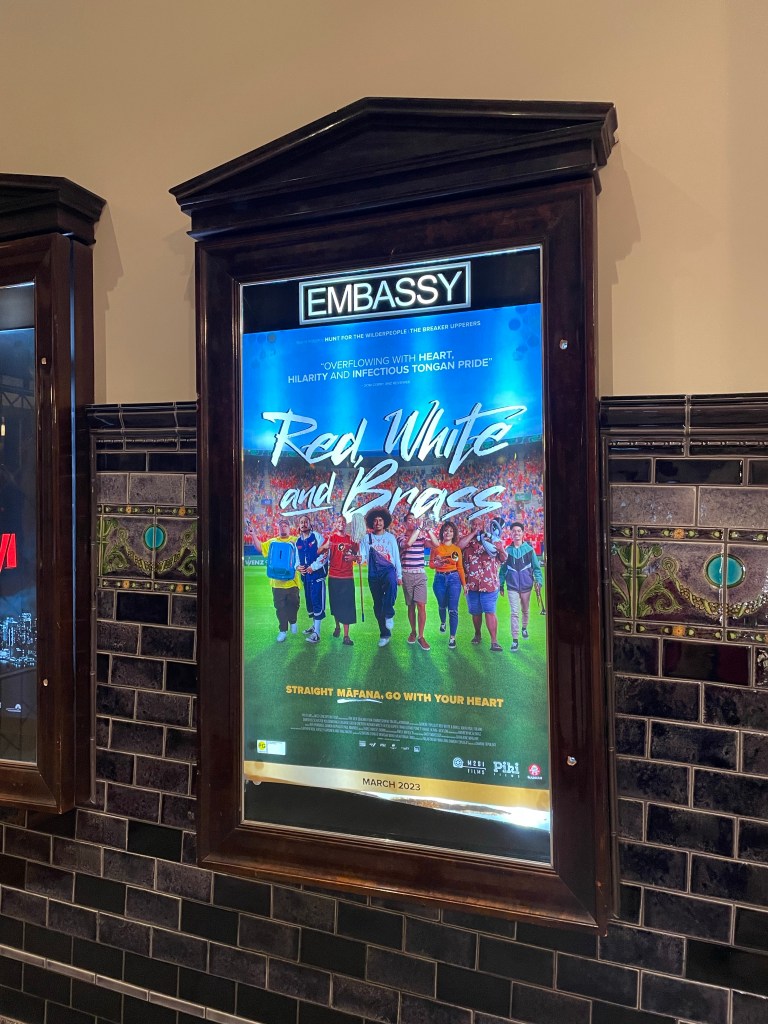 On the plane down to Wellington a few weeks ago, the flight attendant got on the PA and said we were joined by the cast of Red White and Brass, who were flying to Welly for the movie’s world premiere. Cool, I thought but meaningless to me. The next morning I happened to walk right by the theatre and snapped a shot of the poster.