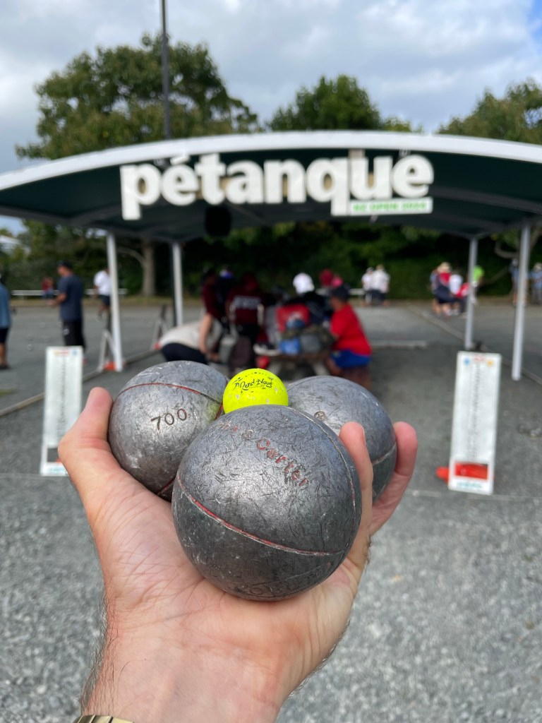 I played in the big NZ Open pétanque tournament this year with fellow Northcote Pétanque Club members John T and Christophe C. With something like $6,000 in prize money, it’s the biggest event in the pétanque calendar and attracts a number of overseas teams.