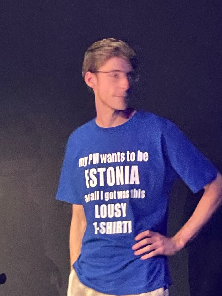 This guy was part of the crew, and the shirt was great and topical. Our new Prime Minister made some dumbass comment about how we should be more like Estonia as a justification for his government’s reduction in public sector jobs. And that was fodder for a long bit in the show. For example, NZ could definitely beat all of Estonia’s nearby neighbors at cricket.