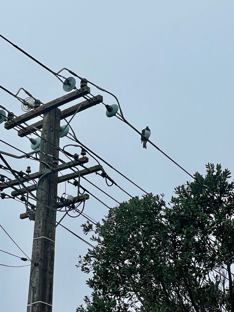 Our new house is on a street where the power lines haven’t been buried yet. But this kereru makes the best of the situation.
