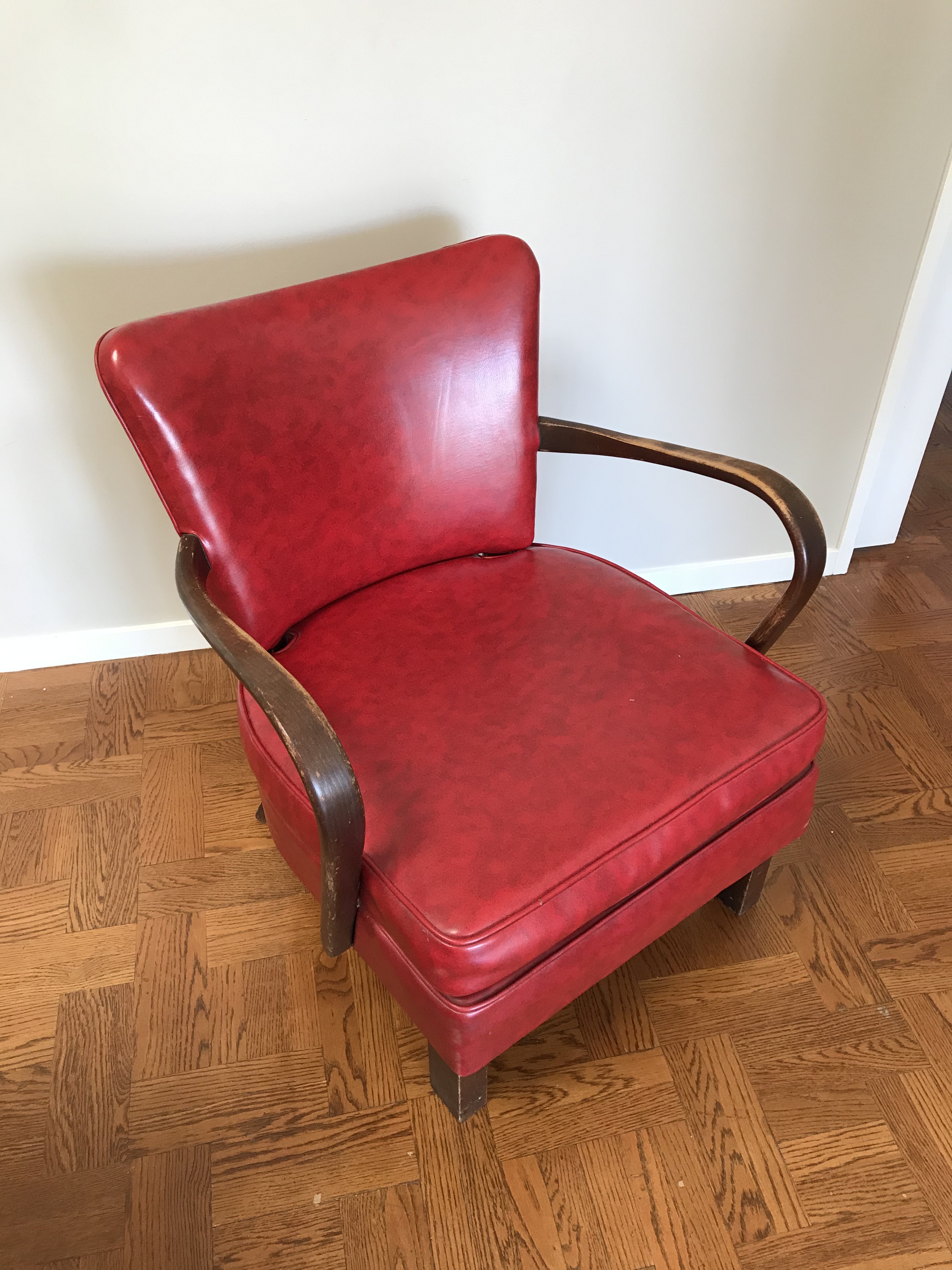 Since there was an element of sacrificial lamb in play, and since being renters makes us wary of investing too much in house stuff, and since things are just insultingly expensive, the decision to buy a used one was easy enough. And anyway, we like the hunt. The one we found has good bones, but the upholstery was in bad shape, sun faded and starting to shred in a few places.