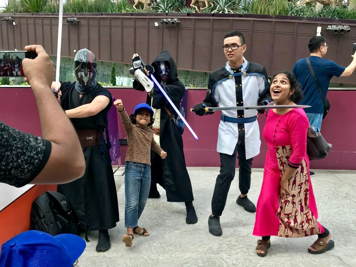 I am a little uncomfortable around a lot of this cosplay stuff, to be honest. But this family of tourists was all in and didn’t share my queasiness, and it was cool to watch mom and kid having such a good time.