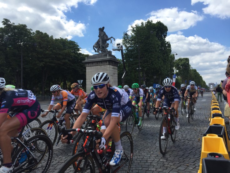 We can see the finish line now, literally and figuratively. After the little bike tour, we jumped on the Metro and rode down to the Place de la Concorde to watch the women’s race and then a couple hours later see the men come through for the famous circuit race up and down the Champs Elysées.