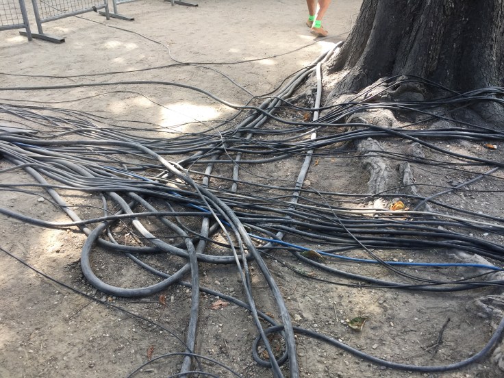 What a difference a block makes… Our passes let us wander inside the secure area, where many thousands of police lounged in cars and paddy wagons, watching YouTube videos, checking Facebook, and praying to stay bored.