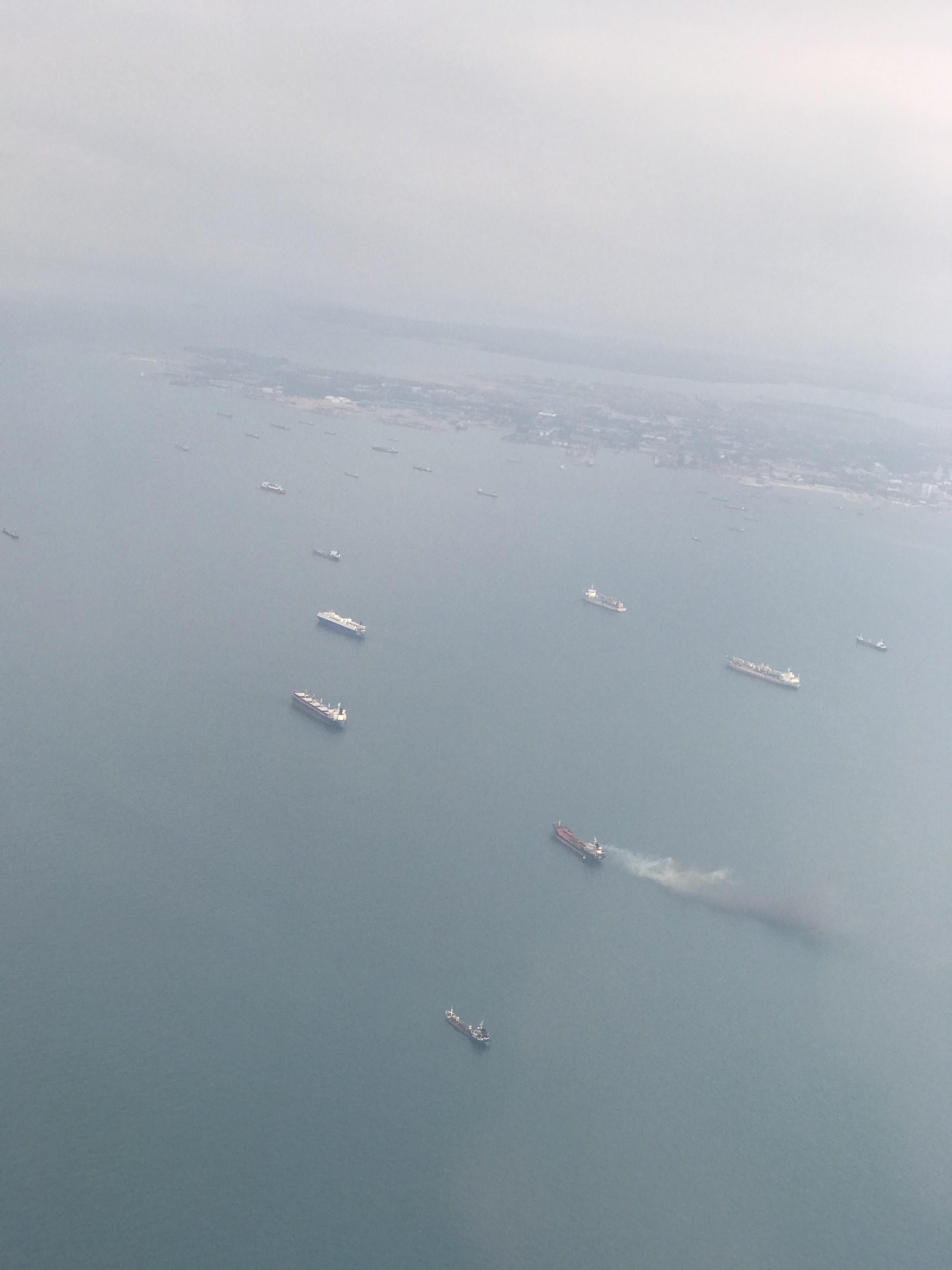 A not very good shot of the vast ship parking lot in the Singapore Straits.