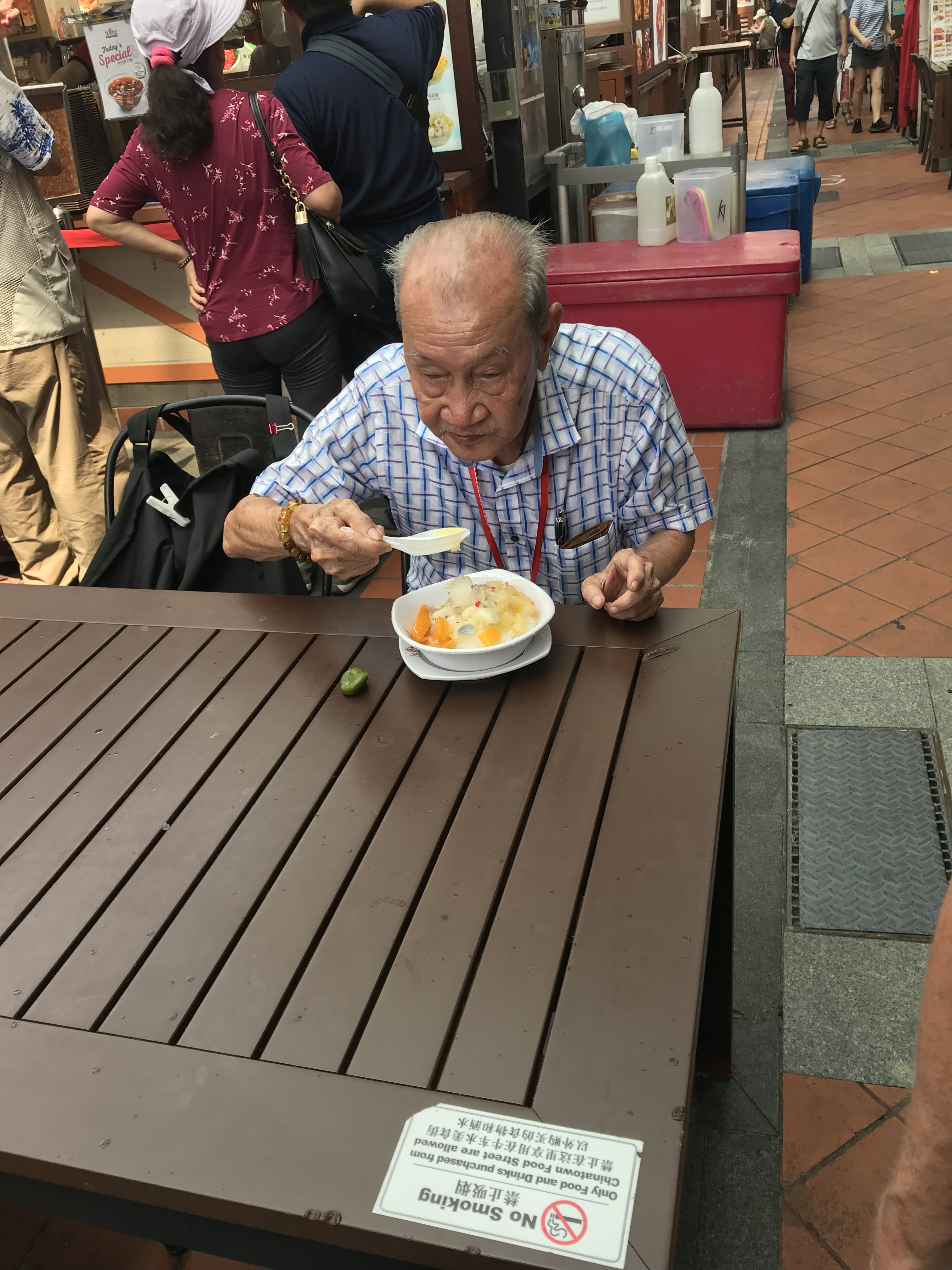 After seeing this guy tuck into a giant bowl of shaved ice, fruit, and custard goo, I ordered my own. Just right for a 95-degree day.