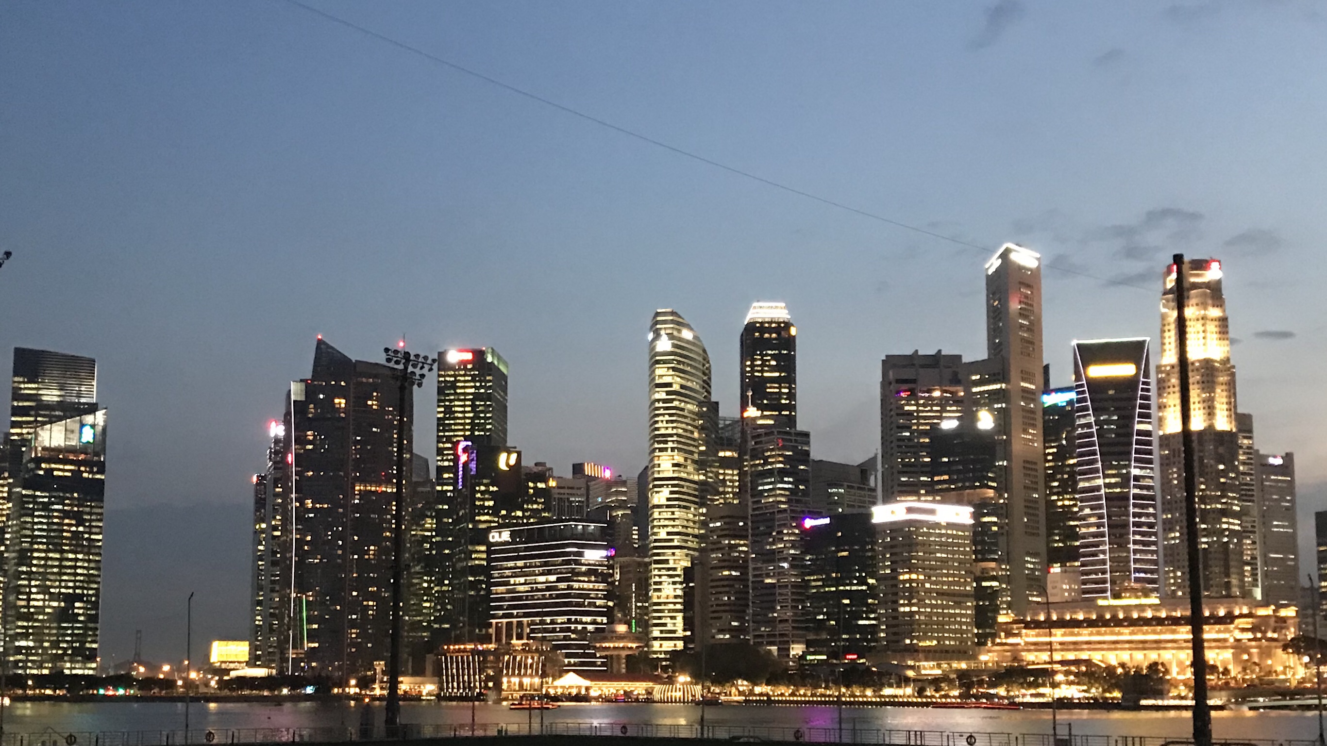 The famous Raffles Hotel bar is closed for renovations, so we settled for Singapore Slings at a waterfront tourist place… tasty but not the same.