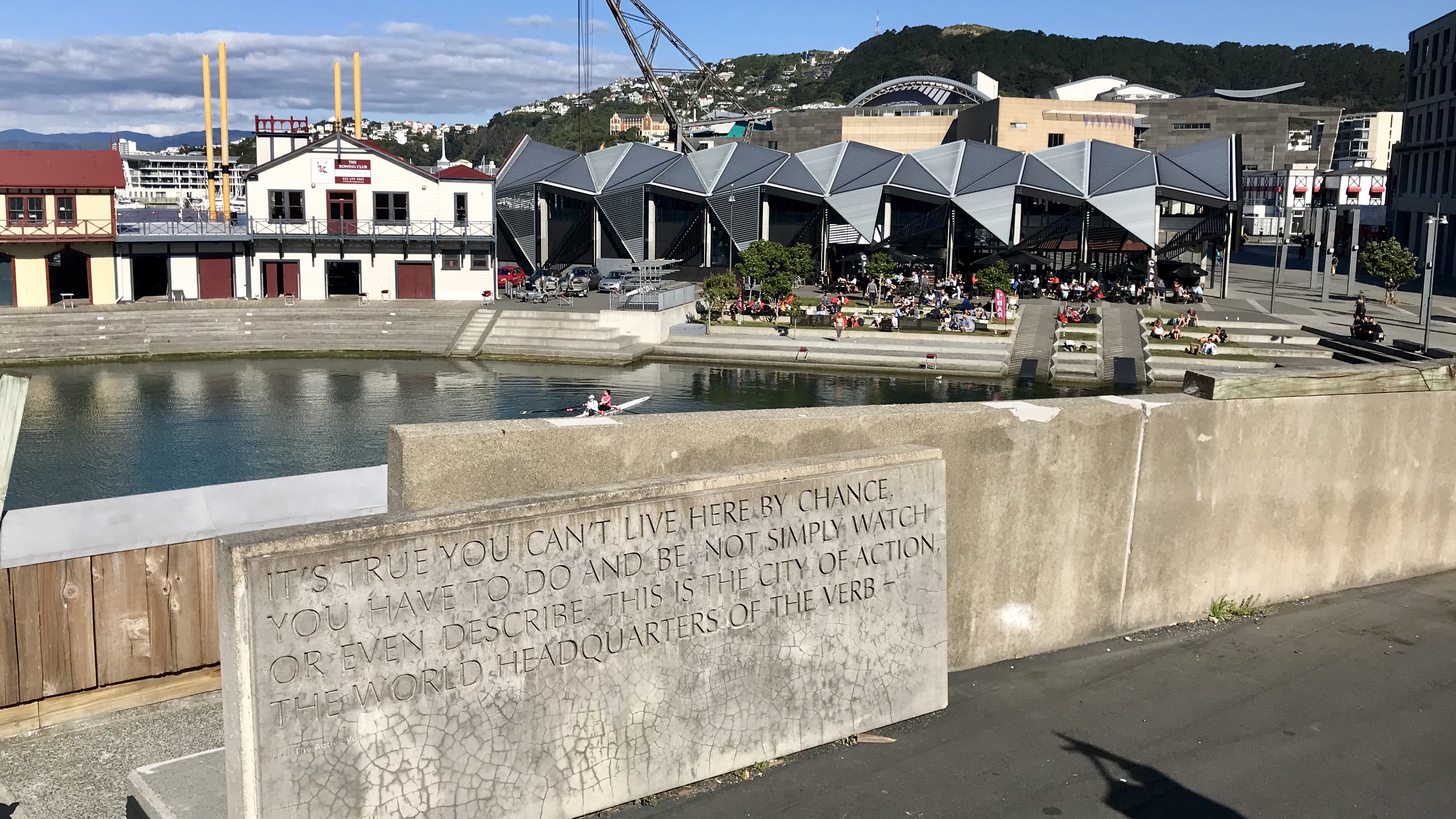 This statue is decorated with words from the writings of Wellington beloved author Katherine Mansfield.