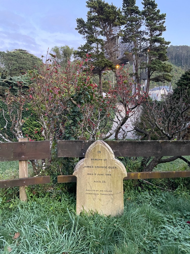 On a recent trip to Wellington I found myself at a meeting in a hotel conference room. Hardly surprising… that’s pretty much what I do on work trips. One of the guest speakers gestured out the window behind him and said that his first NZ forebear is buried in the cemetery there. I’m always up for a good graveyard, so the next morning on my constitutional walk I visited the site.