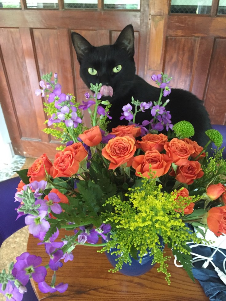 After the race on Saturday morning, we went to Homestead Farms in Walpole. They are most famous for their cider doughnuts, which are wonderful, still warm when we grabbed a dozen. However, on a healthier note, they also have a you-pick tomato greenhouse. For $1.25 a pound, you grab as many as you want. It took about a minute to fill up a flat: amazing!