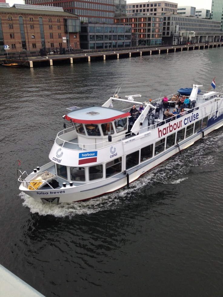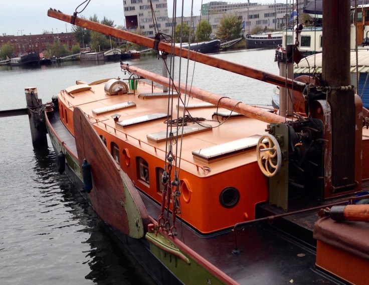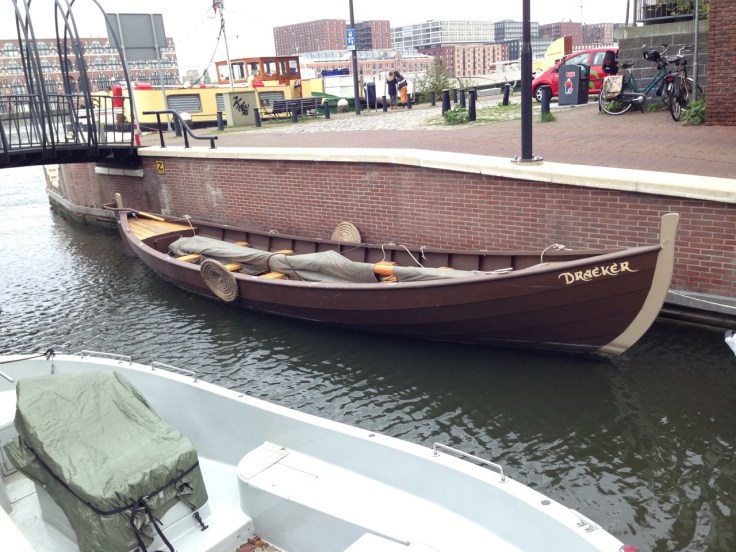 This building, a block or so down the canal from where we are staying, seems to exemplify a lot of the architecture here… The basic forms are still pretty much boxes, but they have been jauntily inventive in surface treatments and decoration.