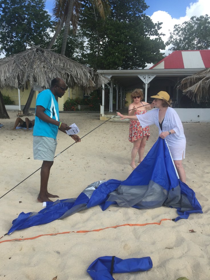 And then demos her skills behind the counter… Incidentally, the guy on the left was on the dolphin dive with me earlier in the day, so we got to coach each other in how to make people roll their eyes at the story.