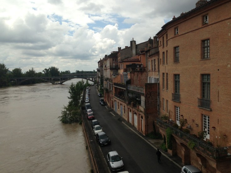 A puddle in Montech, which today is mostly what we’ve seen. There’s some kind of heat wave back home, however, so maybe this rain isn’t really so bad.