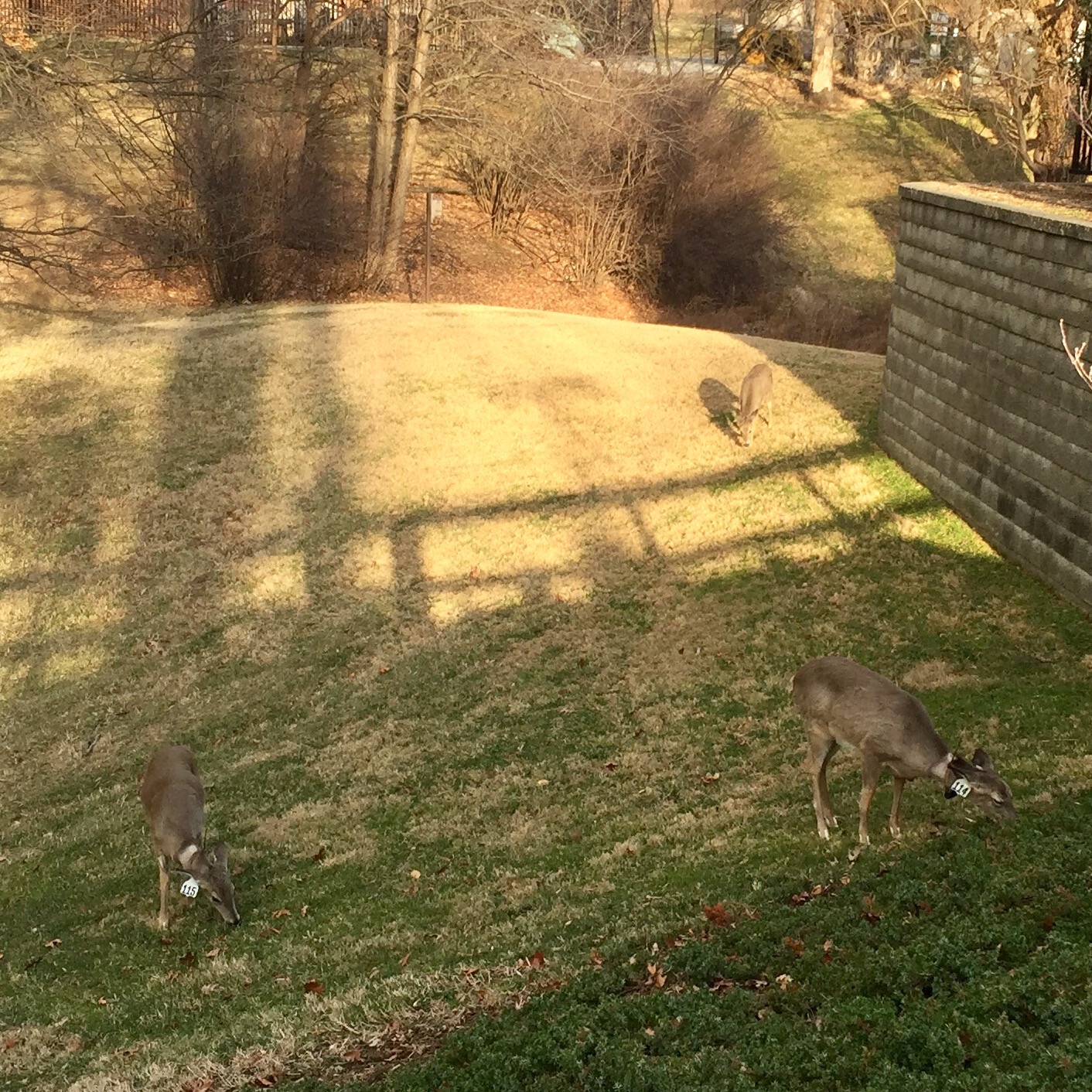I visited the NIH campus in Bethesda today. Walking from the Clinical Center back to the Metro station, I stopped for a second to admire how nice and woodsy it all is. And then, as if on cue, a whole herd of deer arrived. Very impressive, Mr. Federal Planning Division, very impressive indeed.