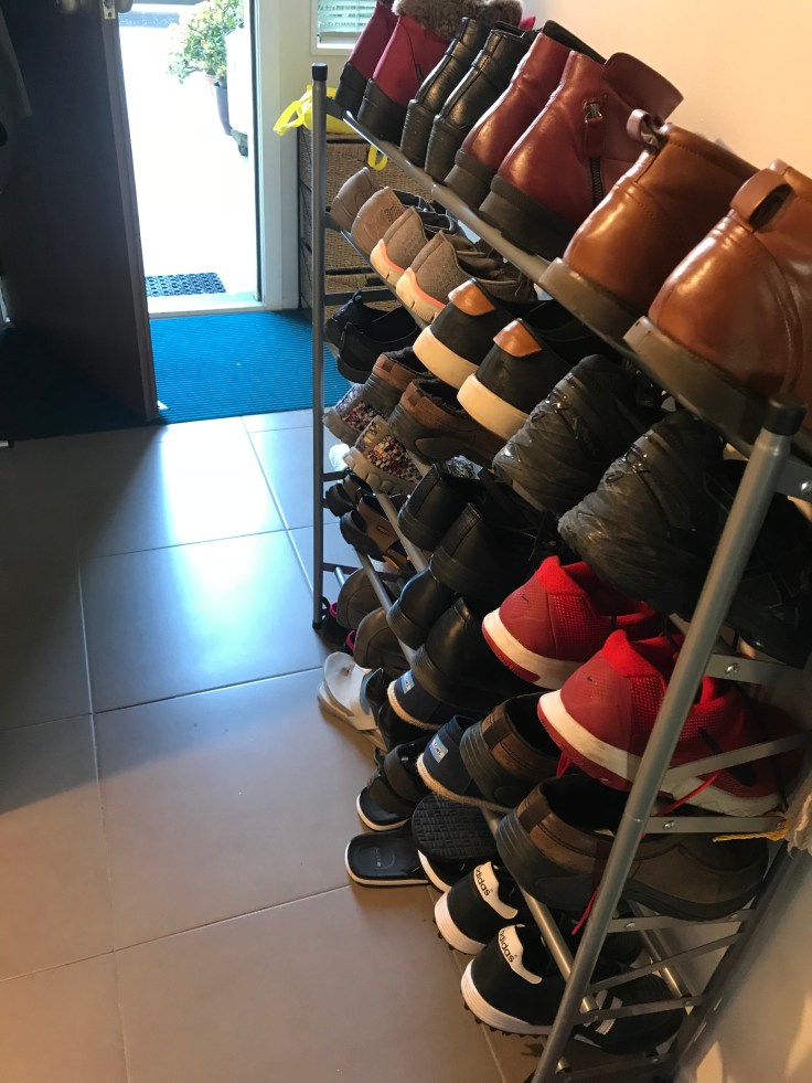 Why didn’t this occur to either of us? We are people who actually care about this kind of thing… if we are forced to store our shoes in the front hall, then we’d like them to be less untidy. But the simple solution just didn’t appear in our minds.