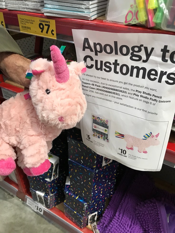 But it happened today in regards the Fluffy Unicorn Pencil Case at the Warehouse.