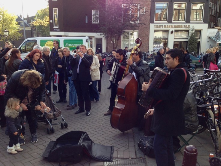 Despite the cloudy weather and the indifference of the crowd, this girl gave an energetic and entertaining performance. On the one hand, I was very happy to watch her because she really just got up and started doing tricks on her hoop, avoiding the endless build up that so many street performers seem to do… They can spend half an hour attracting the crowd, and then give a three minute show. On the other hand, I was sad, because as a result of her focus on her art rather than her showmanship, she only earned a couple of euros for what looked like some pretty hard work.