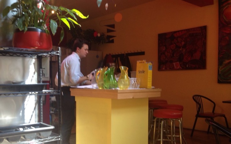 When we got in, there were a couple of other tables just finishing up, but shortly it was down to just us and a single gentleman sitting in the window. It turned out he was pretty crazy, and probably drunk as well. He was talking animatedly to himself, and enjoying eating his mixed greens with his fingers. He also had a family size box of Cheerios.