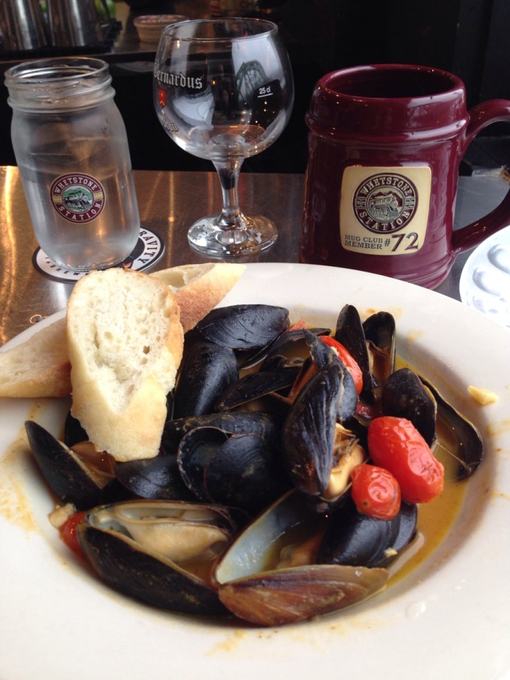 Lunch at the Whetstone, featuring some sort of exotic Trappist Christmas ale and a plate of mussels in a rich broth. Yummy!