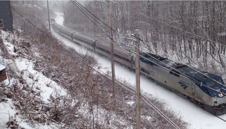 The Amtrak Vermonter heading south. Yesterday, the engineer tooted Jingle Bells, which was awesome.