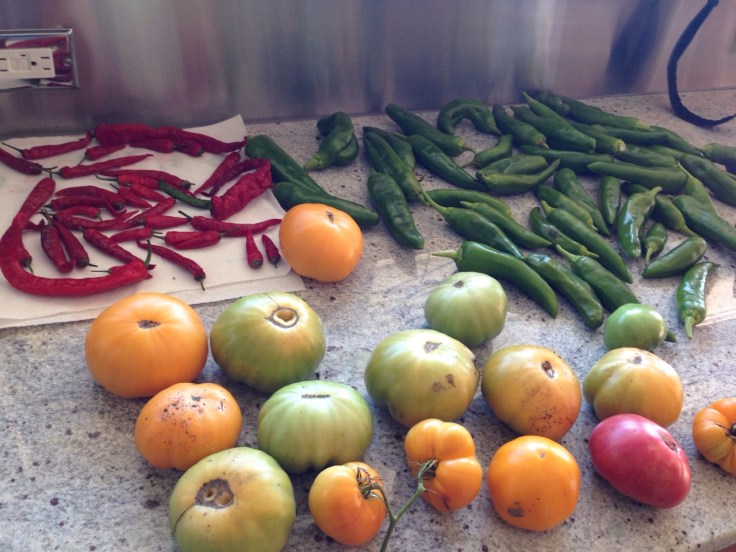 Our last, or possibly our second to last, harvest of the year. Peppers, tomatoes, all good.