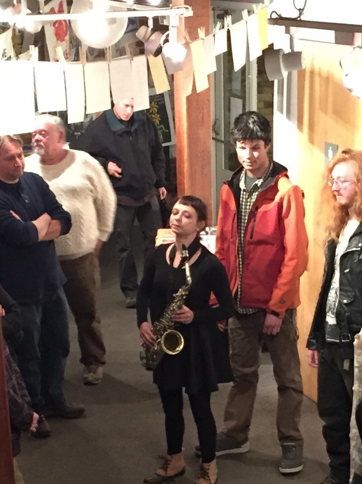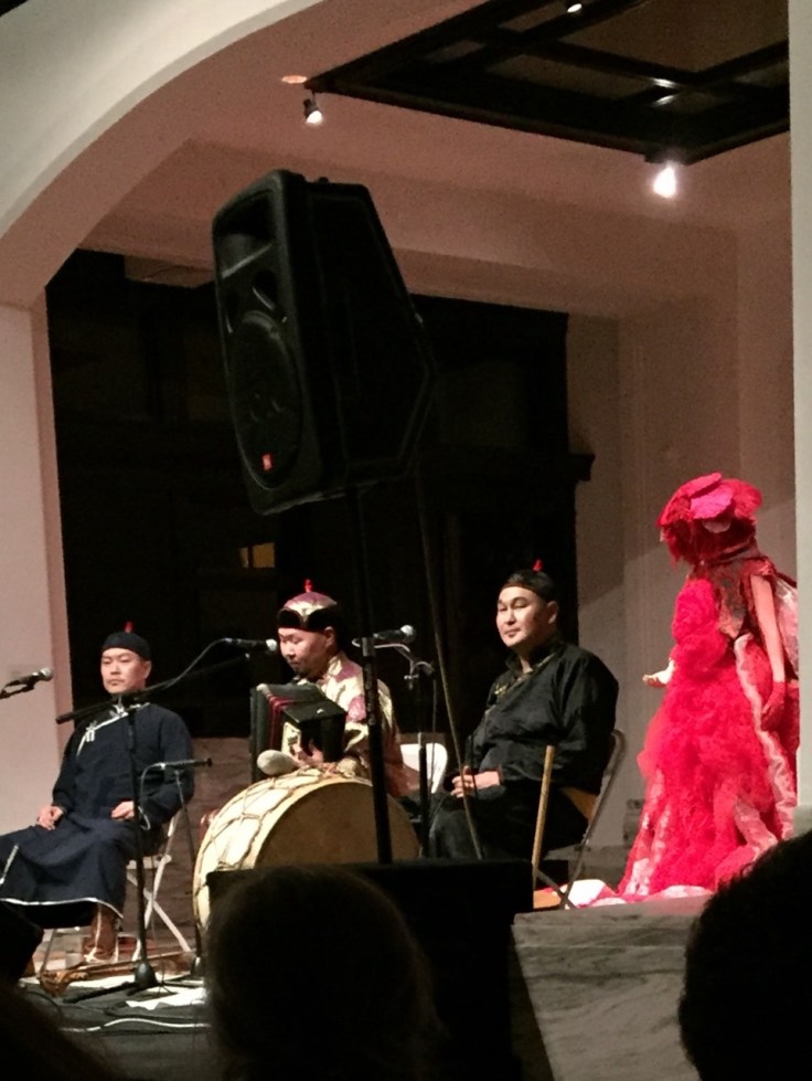 It’s weird, for sure, and I find it completely mesmerizing. They accompany themselves on banjo-like instruments, guitars, and drums for the most part. Early on in the concert I leaned over to Lee and said the only thing that could make it better would be if they found an accordion somewhere… and then, presto, the guy in the middle pulled out an accordion. Heaven. I should also point out that the red figure in the background is a mannequin, part of the museum’s exhibit. I’m not sure exactly what she is supposed to represent, but she made a colorful backdrop.
