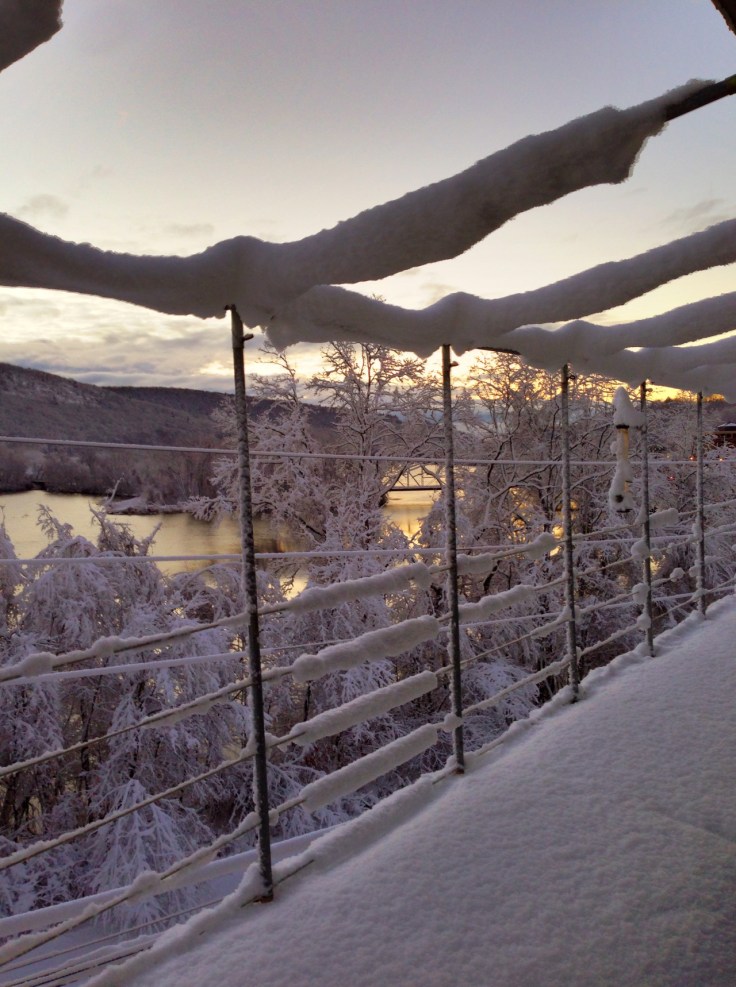 The Retreat’s new sculpture, A Matter of Balance, decorated for Christmas.