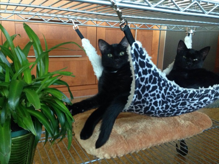 We picked up Deja and Vu (working names since we can’t tell them apart) today at the shelter. They will probably be sad to leave their tabby sister, but she got a lot of attention anyhow and might have been a little too proud of her stripes.