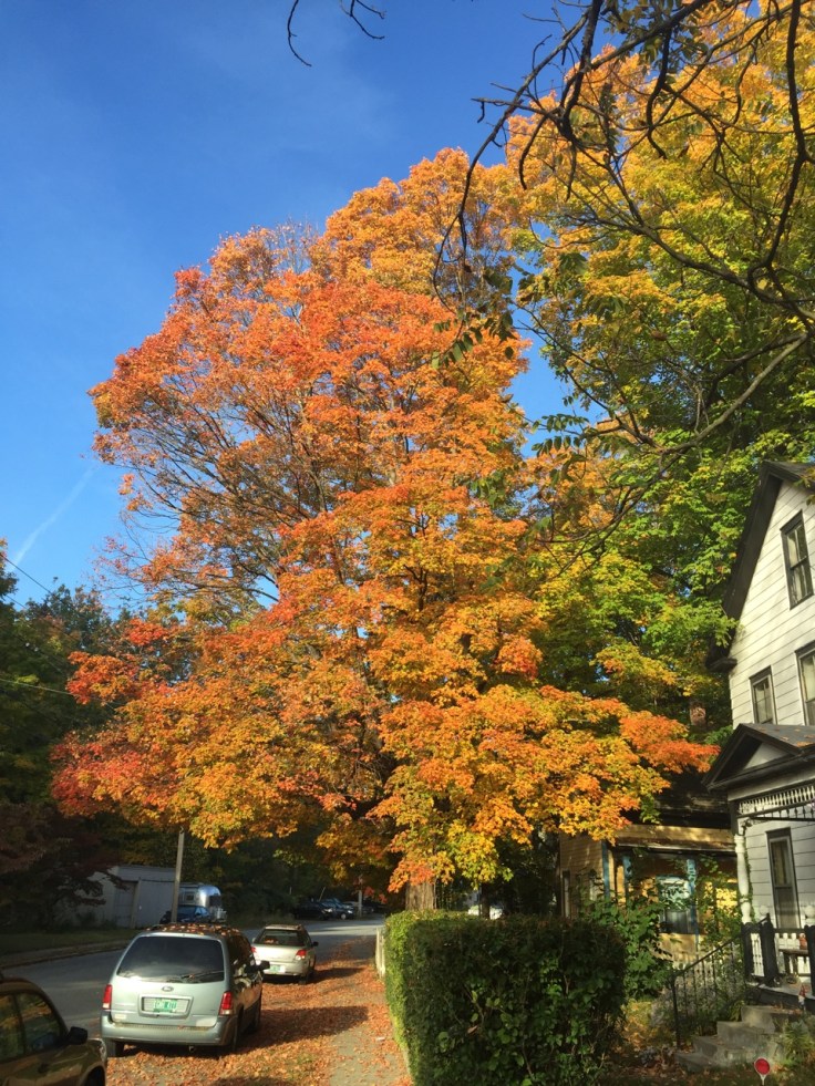 A few last trees hanging on to their colors. The sun reflecting off the river here foreshadows the ice to come.