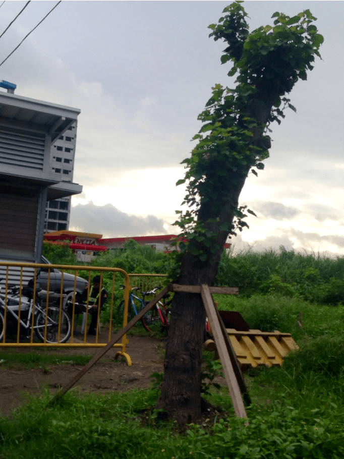 Here, the guard shack presides over an open field, while the guard reads a newspaper next to a smoldering campfire. This is on one of the major arteries in the entire city, just blocks from the gleaming Mall of Asia.