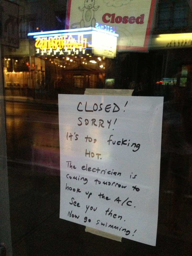 With the Latchis marquee all lit up in the background, the newly reopened Brattleboro Cheese shop vented its frustration yesterday. We wish them well in their new space, which has hosted several failures since we arrived on the scene. Hopefully they can break the curse!