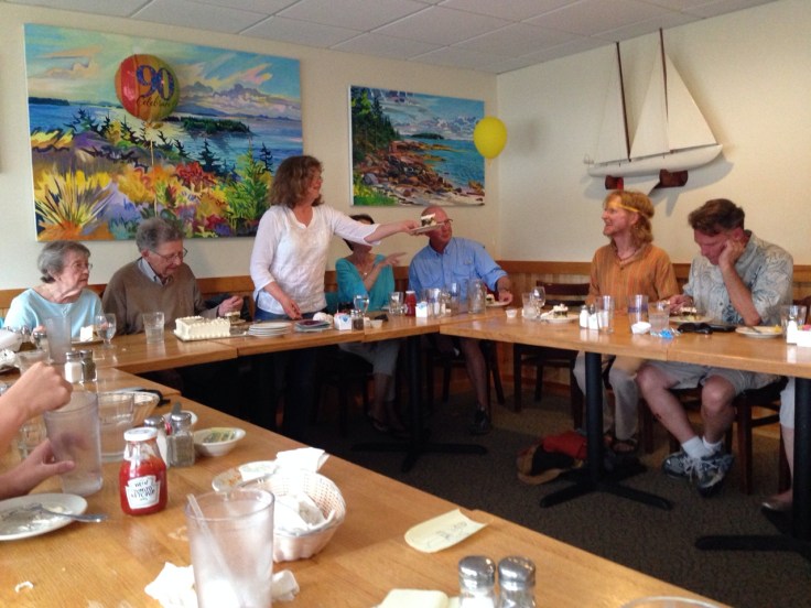 The real excuse to get everybody together was to celebrate Uncle Frank’s 90th, and we did so at Stonington’s Fishermen’s Friend. The company, of course, was 99% of the point, but the restaurant did a surprisingly good job of food and service for the 27 of us. Frank is still as inventive and analytical and good-humored as ever, we should all be so lucky.